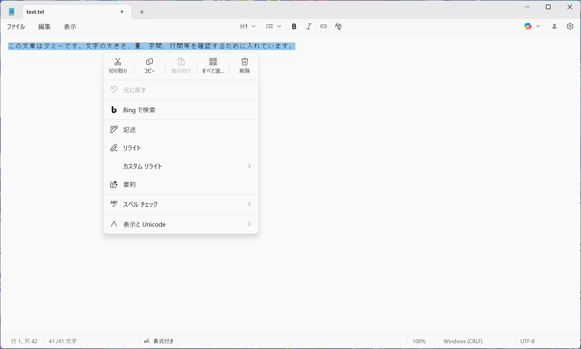 コピーや貼り付けは、コピーしたい対象を選択した後に右クリックから行うことができます。Windows11では上部や下部にアイコンと一緒に表示されるので、これをクリックしましょう。