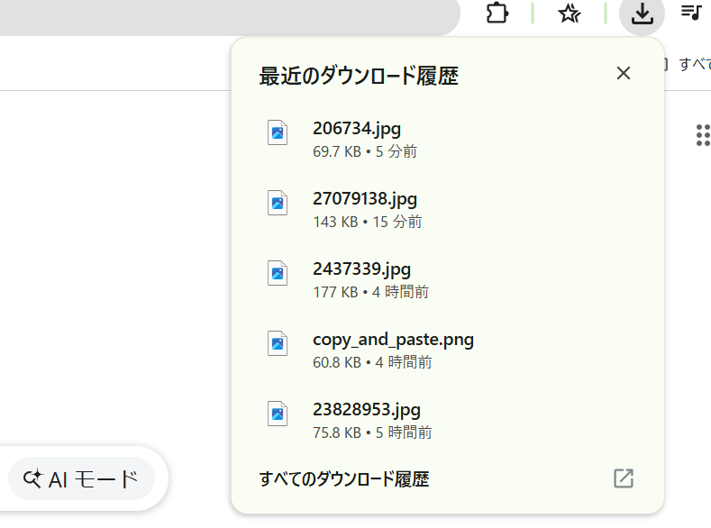 また、ほとんどのブラウザではダウンロードしたファイルが右上に表示されます。ここからファイルを開くこともできるので、覚えておくと便利ですよ。
