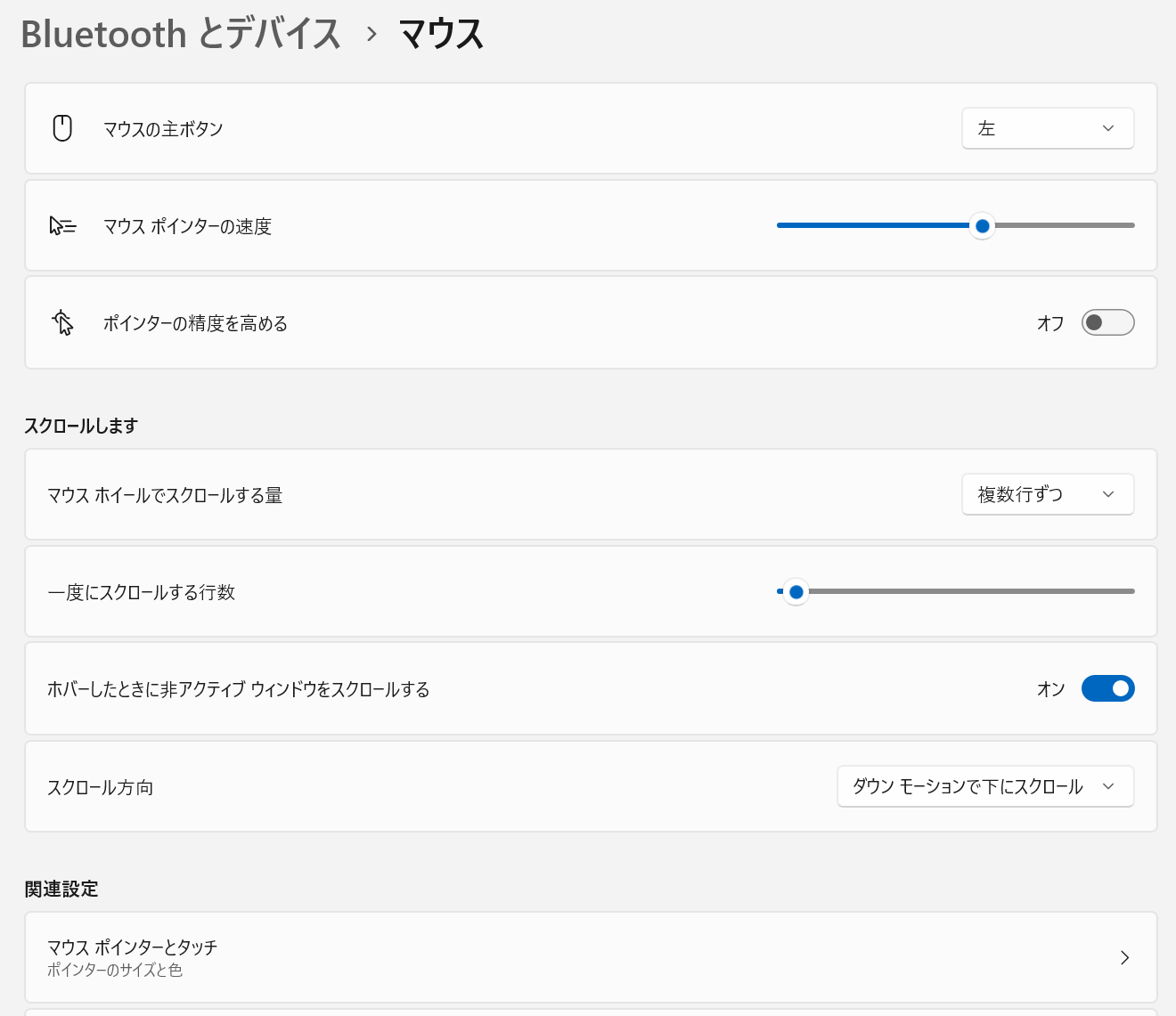 いろいろな設定項目がありますが、今回はマウスの使い心地に影響しやすい3つの項目を紹介します。
