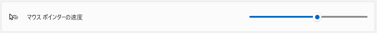 マウスを動かしたときに、カーソルがどのくらいの距離を移動するかの設定です。ここのバーを右に動かすと、より少ない動作でカーソルを動かすことができるようになります。