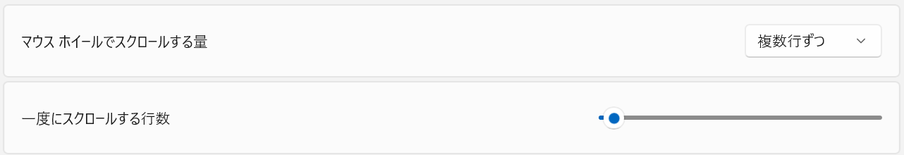 下の項目では一度にスクロールする行数を細かく設定できます。