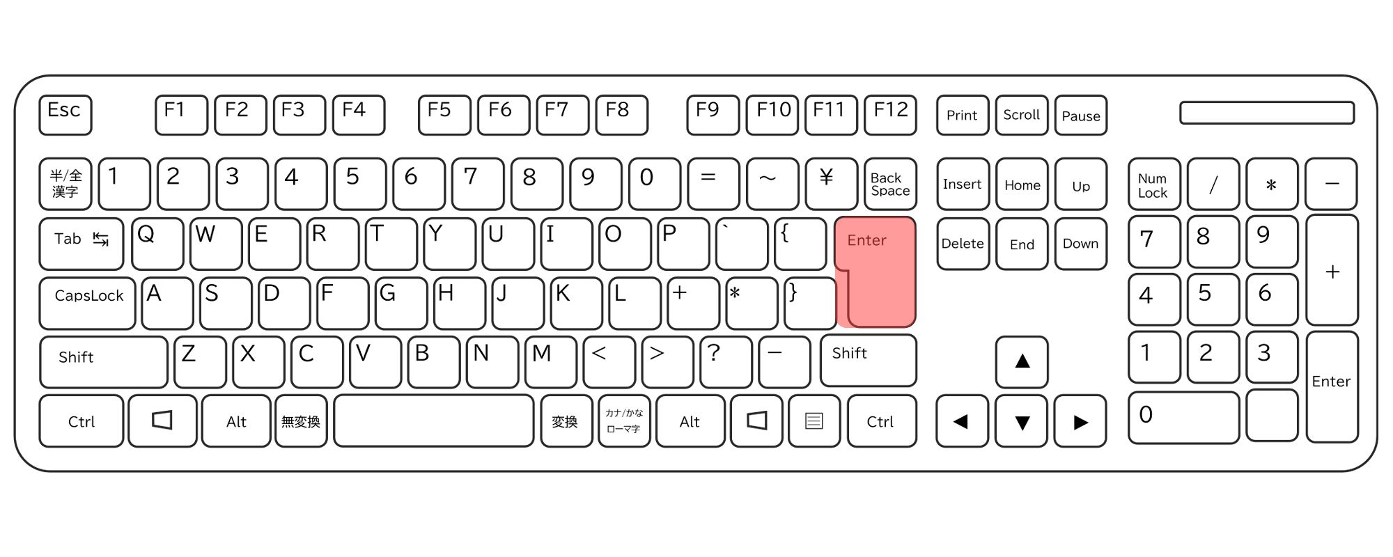 キーボードで文章を入力→必要なら変換→Enterで確定、というのが基本的な流れになるため、必ず覚えておきましょう。また、文章の改行などでも必要になり、出番は多いキーです。