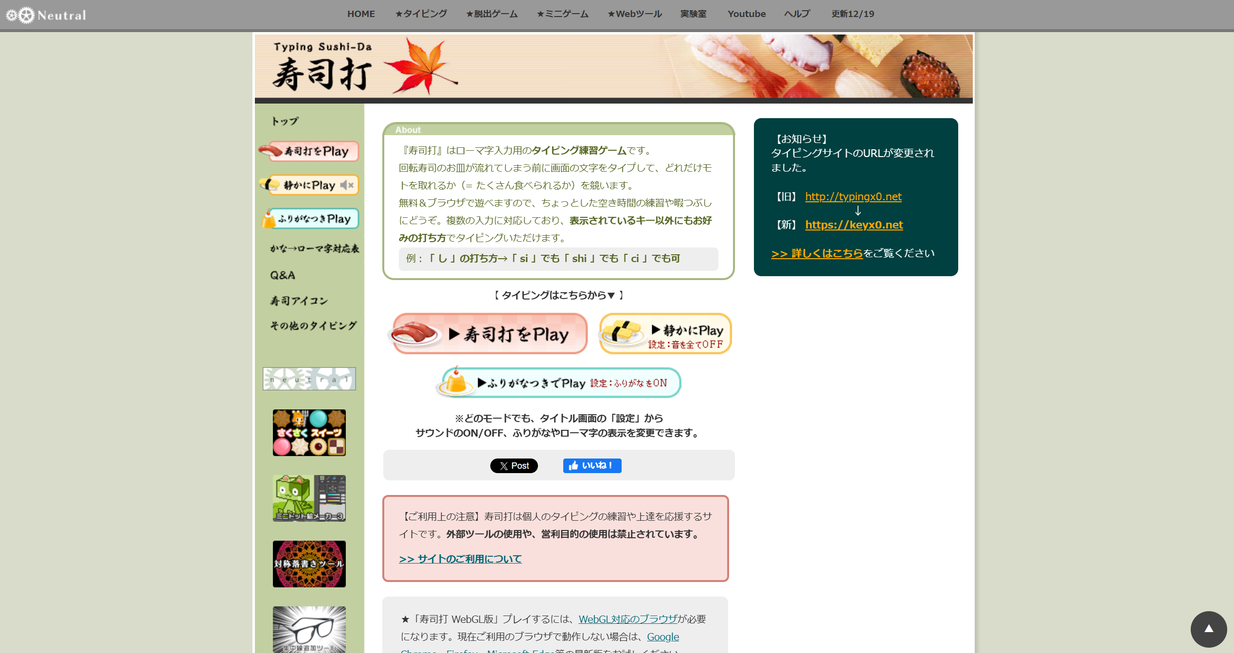 昔から親しまれているタイピング練習ゲームです。他のサイトとは違いゲーム感覚でタイピングの練習ができるため、練習の成果の確認や気分転換として使うのがおすすめです。