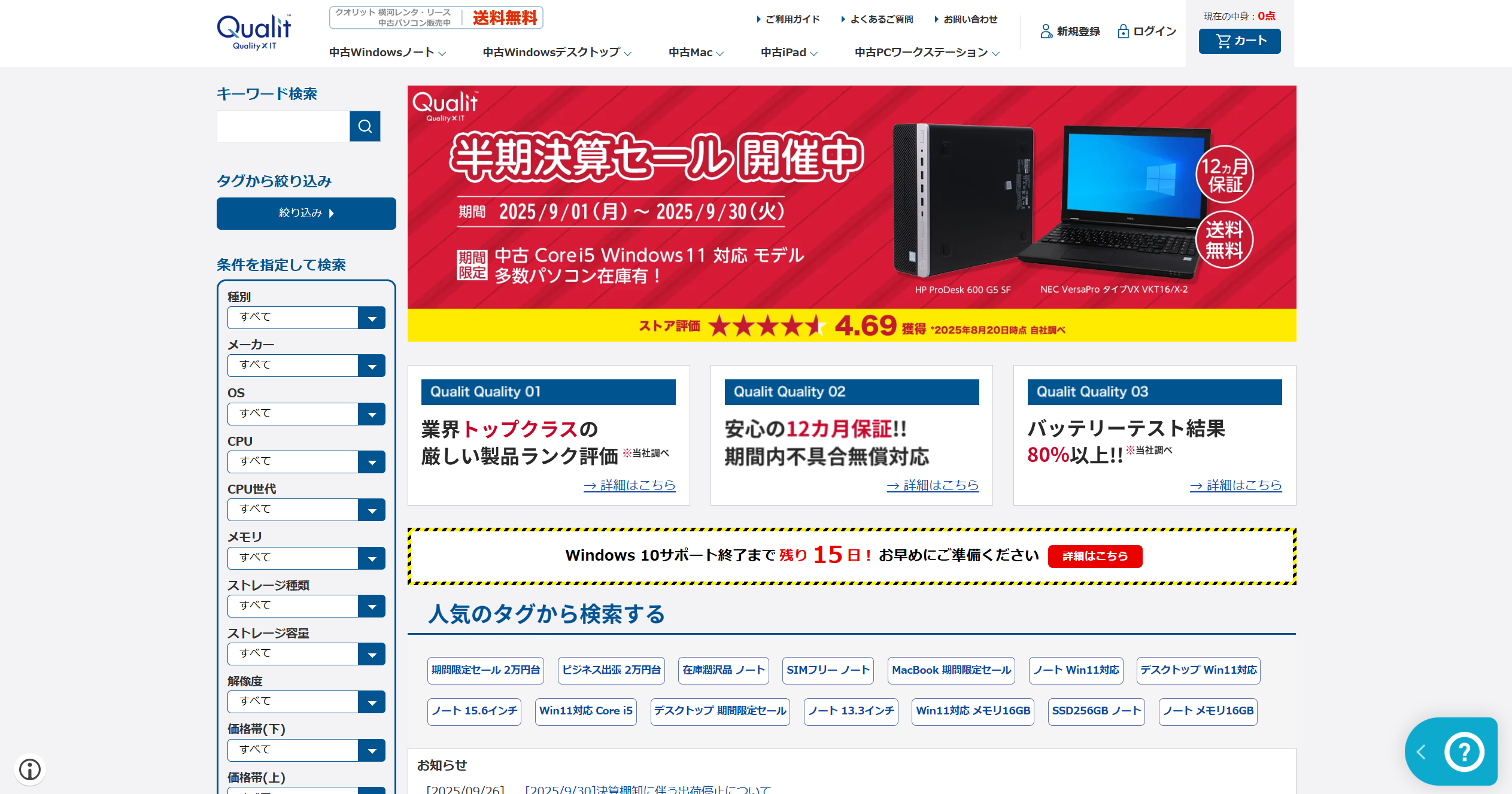 Qualitは高い品質が特徴の中古パソコン専門ショップ