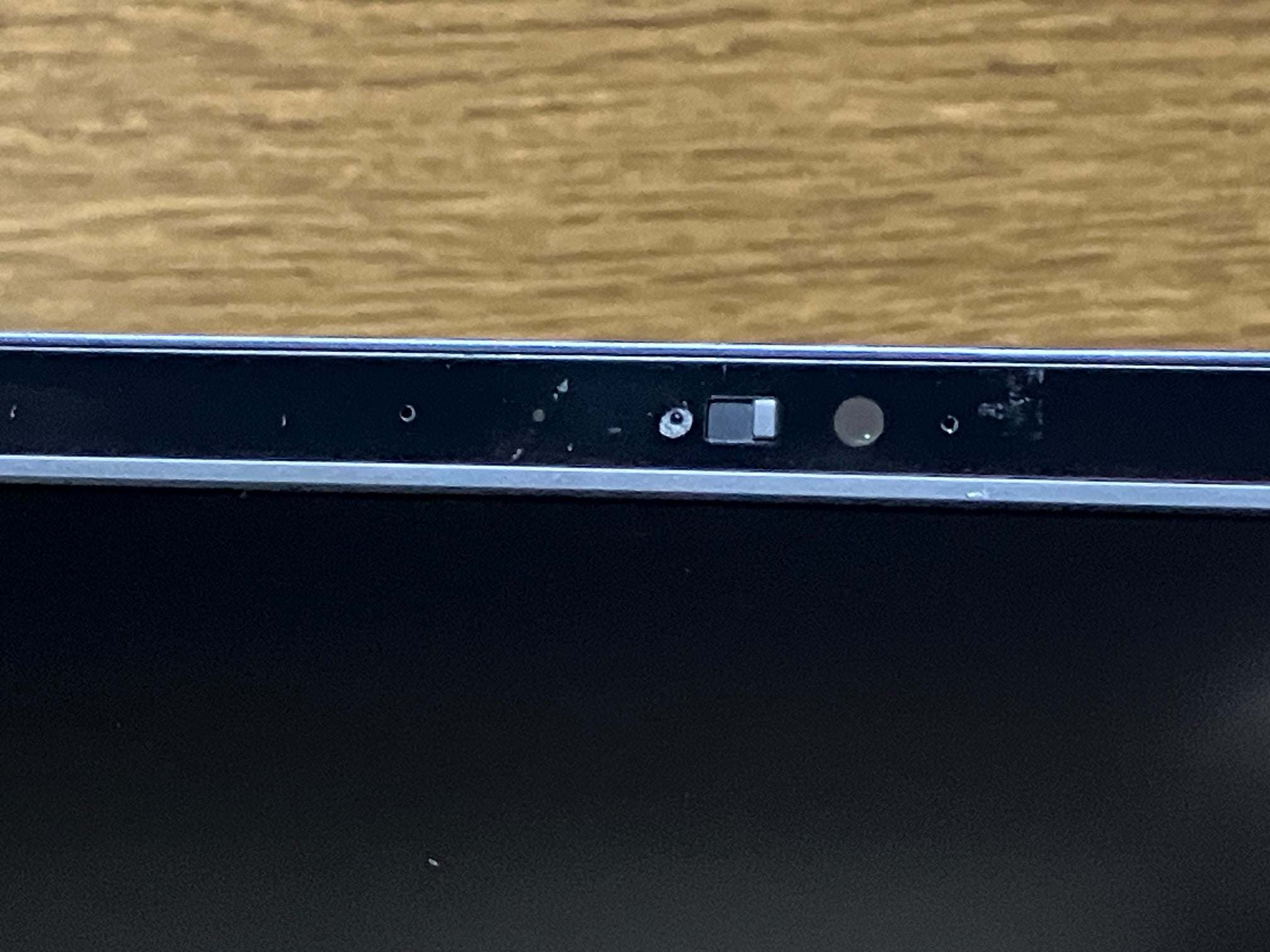 ディスプレイの上についているカメラ部分に細かな傷がついているのを発見。画像だと目立つように感じますが、一つ一つの傷は1mmほどと小さく、目視だとほとんど気にならないレベルの傷です。