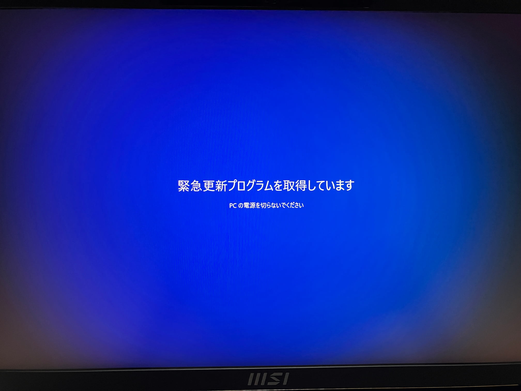 途中で更新プログラムの取得が始まりました。このまましばらく待ちます。