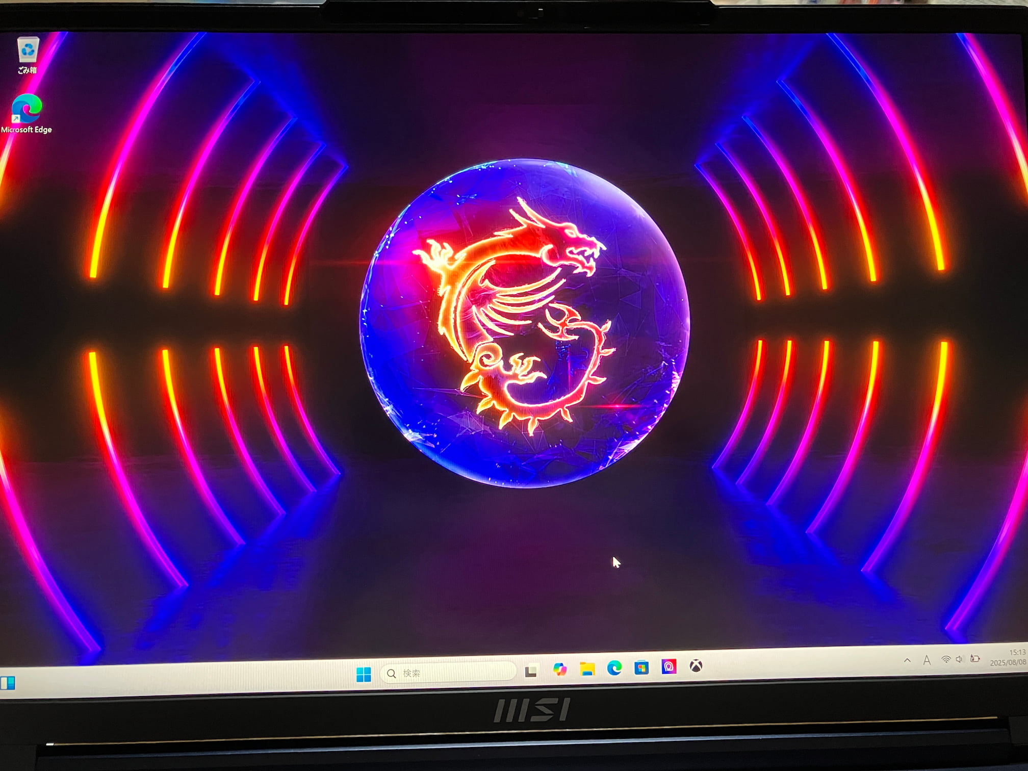 無事起動できました。MSIのロゴが入った色紙がデフォルトで設定されていますね。
