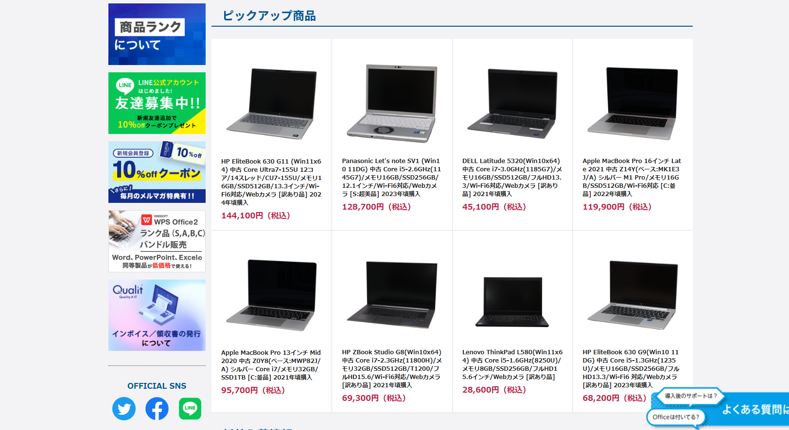 他にも公式LINEに登録でクーポンをもらえたり、メルマガを購読してクーポンをもらえたりと、とにかくたくさんのクーポンが貰えます。クーポンを利用することで他ショップよりも圧倒的に安く中古パソコンを手に入れることができます。