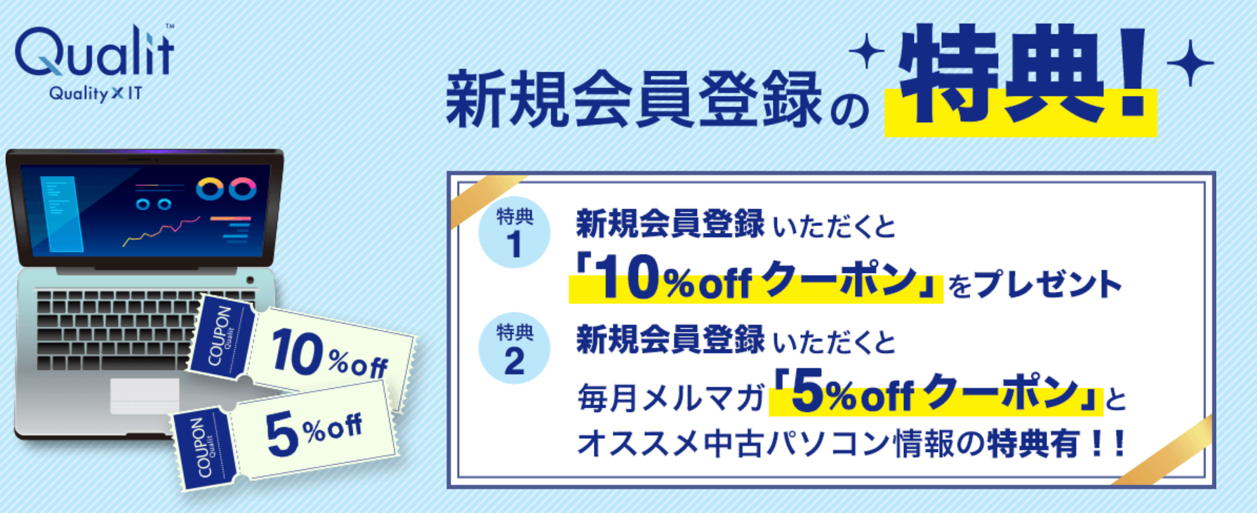 といったトラブルが怖い中古パソコンですが、Qualitなら安心して購入できますね。