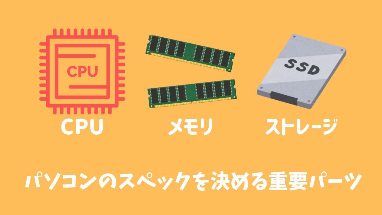 パソコンのスペックはCPU・メモリ量・ストレージ量の3つの性能が大きく影響します。(動画編集やゲームの場合はグラボも)