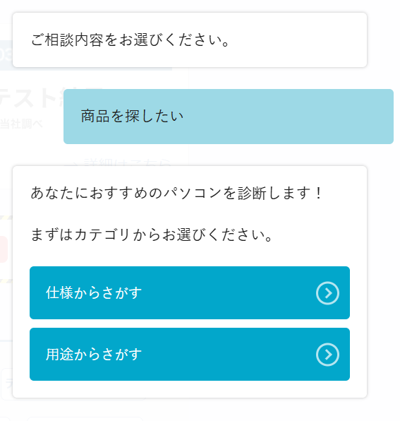 2.チャットツールを使って自分に合った性能のパソコンを探してもらう