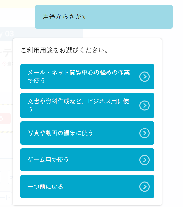 次に、表示された項目の中から自分のパソコン用途に適したものを選びます。この中にない場合には、近い項目を選択しましょう。