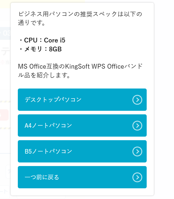 最後にパソコンの種類を選択して、具体的な中古パソコンを提示してもらいましょう。