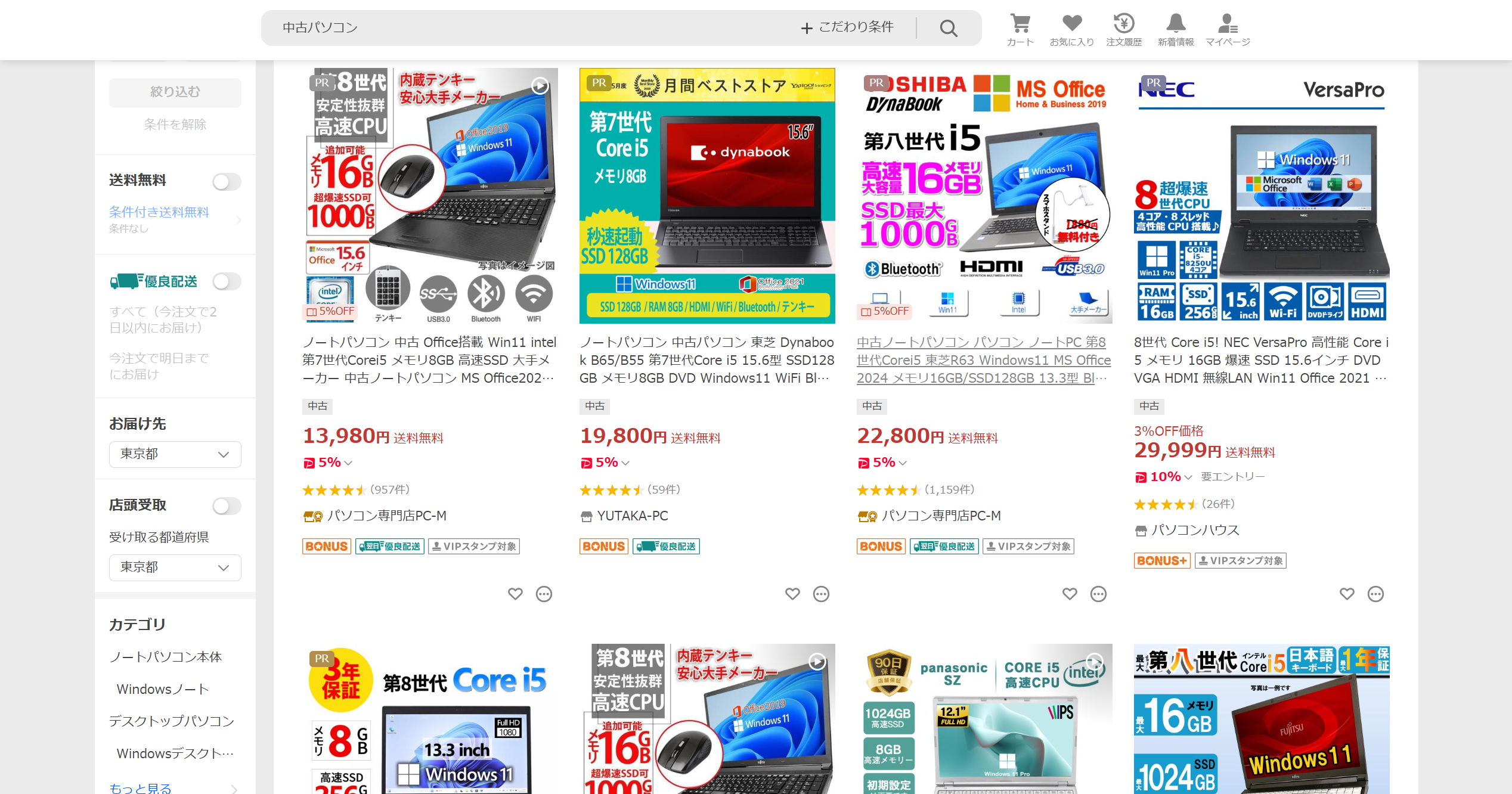 Yahoo!ショッピングやAmazonといった総合ECサイトでは、いろいろな業者が中古パソコンを出品しています。インターネット上で買い物をしたいときに、これらのECサイトを真っ先に思い浮かべる方が多いですよね。