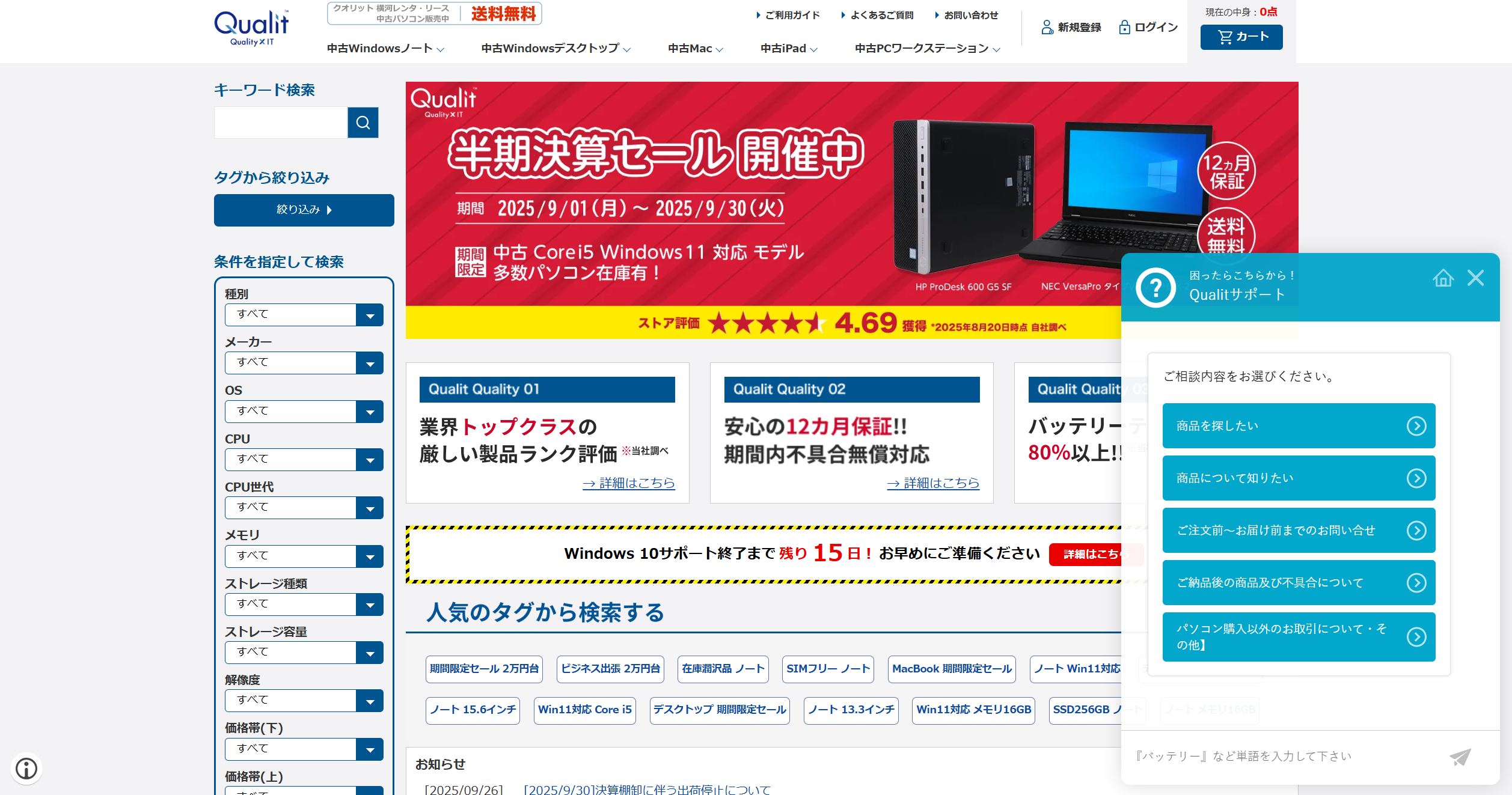 中古パソコン専門ショップの中でも初心者におすすめなのが「Qualit」です。